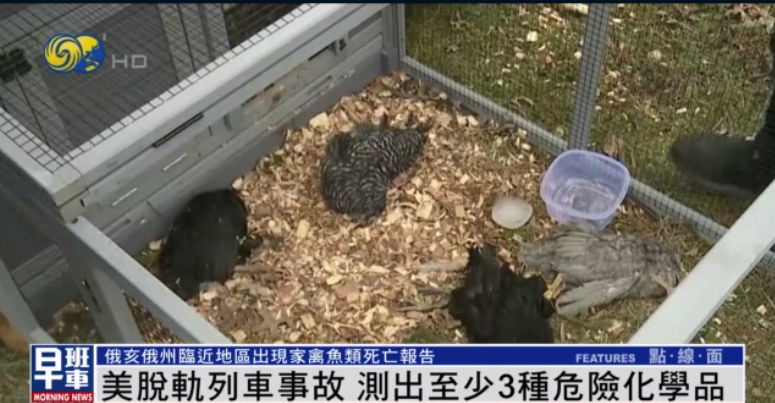 美国俄亥俄州早前发生多节车厢脱轨事故,当局证实在车厢残骸等多处已检测出至少有3种危险化学物质。同时,事发地点附近陆续出现家禽、鱼类不断死亡的事件。