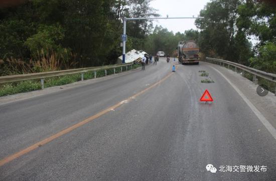 2月11日,合浦县闸口镇佛子村路段一辆轻型货车与一辆危化品运输车发生碰撞,轻型货车侧翻,事故造成轻型货车乘员受轻伤、车辆不同程度损坏。