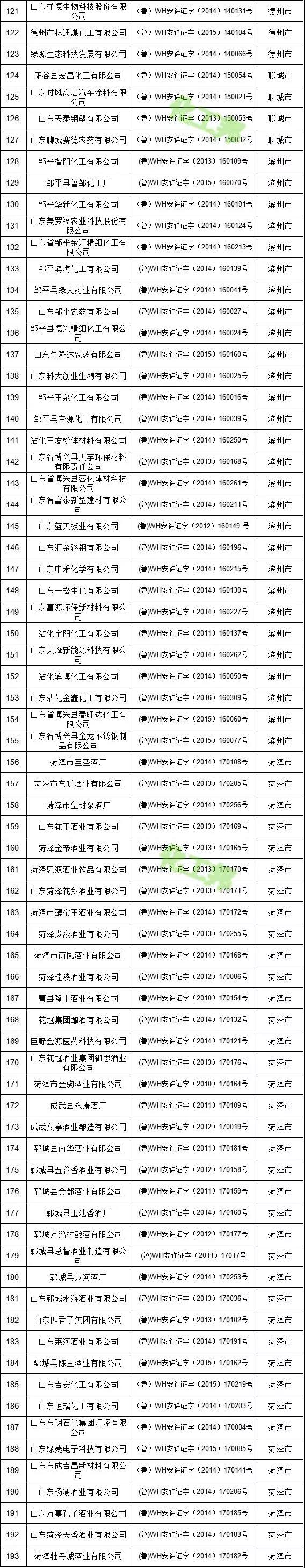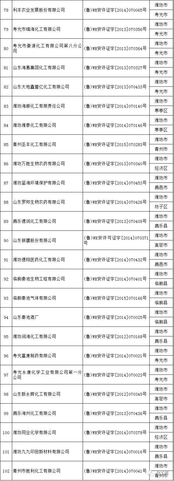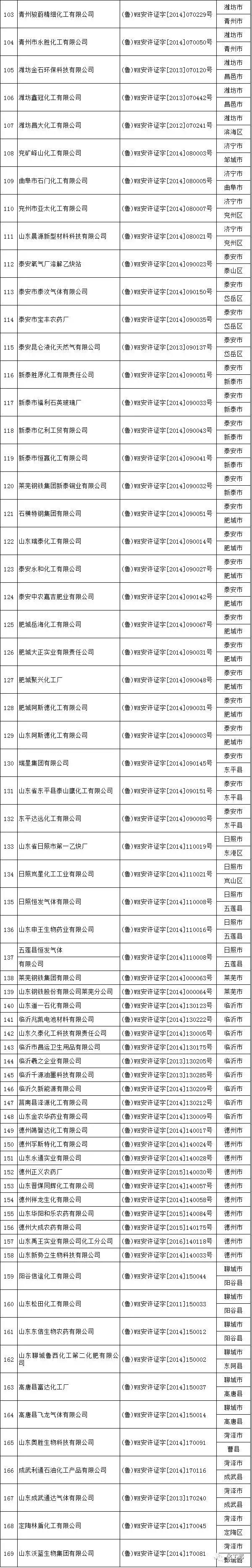 2017年上半年山东全省危险化学品生产企业安全生产许可证注销名单(169家)