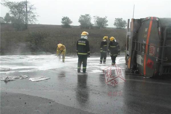 当晚19时14分,槽罐车被吊正。救援官兵对槽罐车罐体进行再次检测并确认无泄漏后,拖车把槽罐车拖至厂方做进一步安全处置。槽罐车拖离后,消防官兵对现场泄漏区实施了洗消。