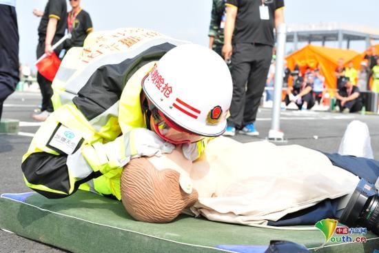 台上一分钟,台下十年功。一名在场领队告诉记者,队员们在平时的训练中,主要是体能、技能和智能的“三能”训练。从上午的比赛情况看,选手在运送软体假人时,凸显了体能上的差距。