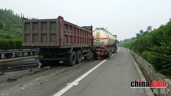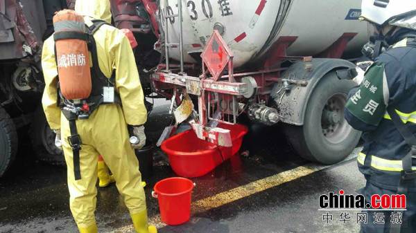 7月23日6时30分许,山西高速交警四支队七大队指挥中心接到阳翼高速公路信息中心来电报警“安阳高速公路晋城去往侯马方向11Km+600m处,有一辆前四后八货车追尾一辆运输危化品的半挂货车,危化品出现泄漏,无人员伤亡。”
