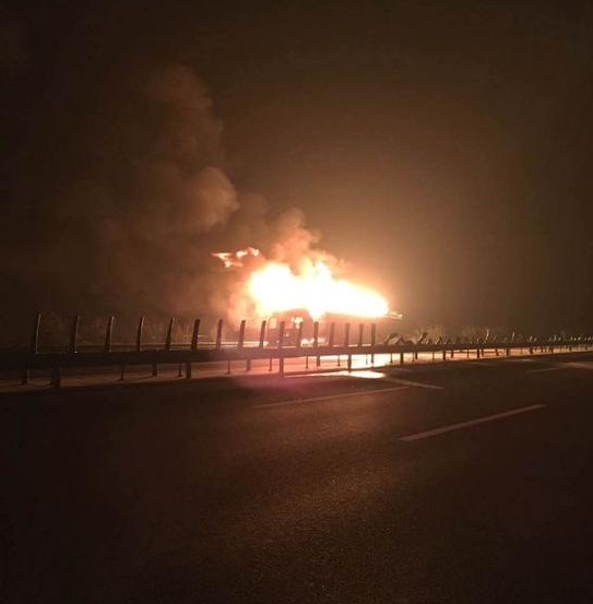 “火有10多米高,一公里外都能看见。”现场一名目击者提供的视频和图片显示,周围一片漆黑,火已将车辆包围。
